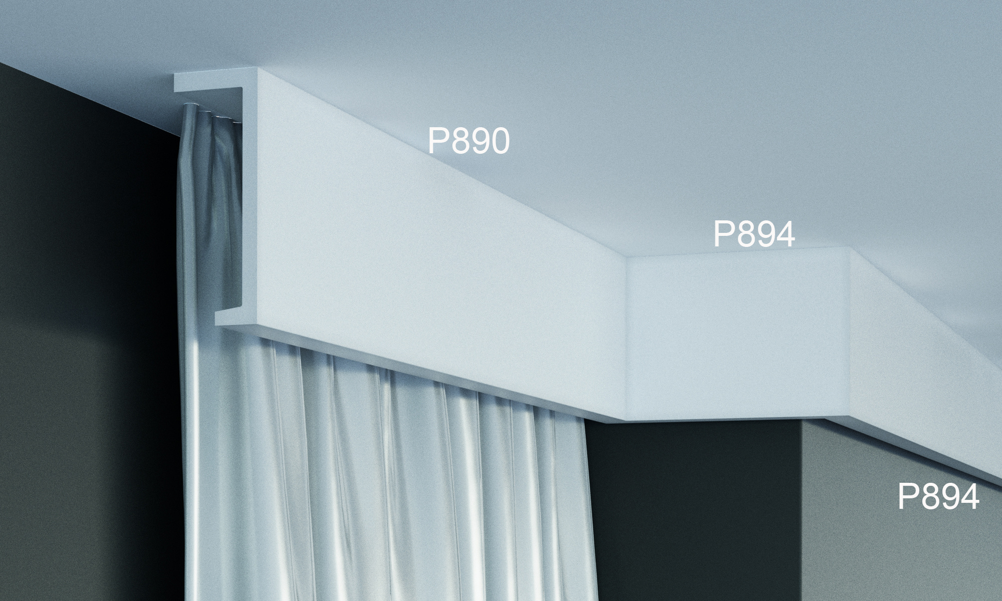 De P890 gordijnlijst is een decoratieve kooflijst en kroonlijst voor gordijnen, ontworpen voor een nette en stijlvolle afwerking boven het raam. Deze lijst vormt een elegante overgang tussen muur en plafond en is ideaal voor interieurs waar de afwerking bewust zichtbaar mag zijn.