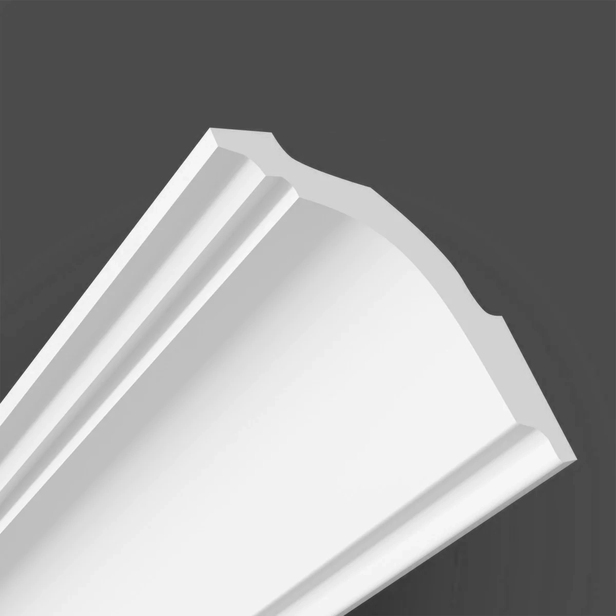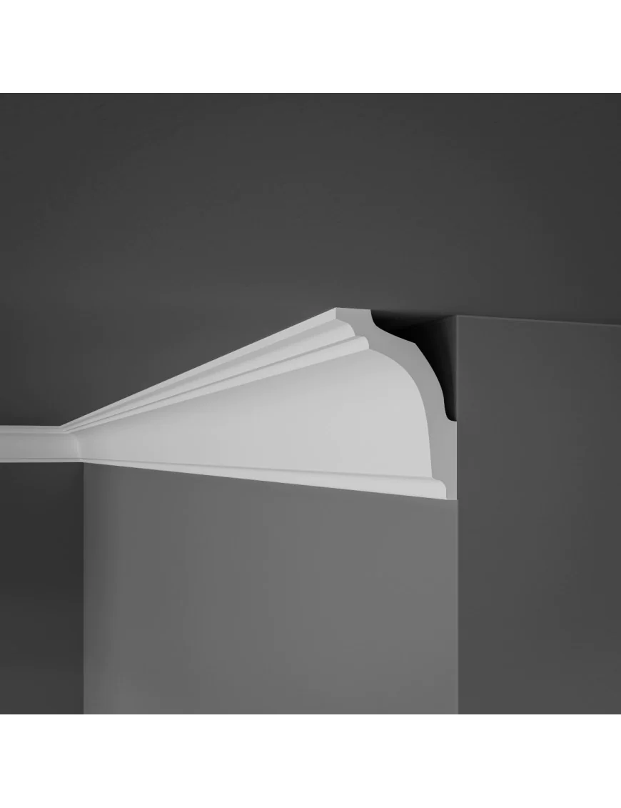 Plafondlijst vervaardigd uit geëxtrudeerd polystyreen voor een decoratieve afwerking tussen wand en plafond.