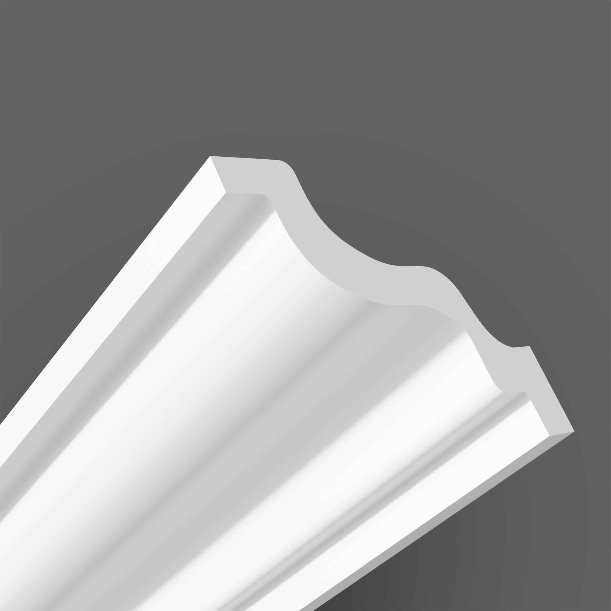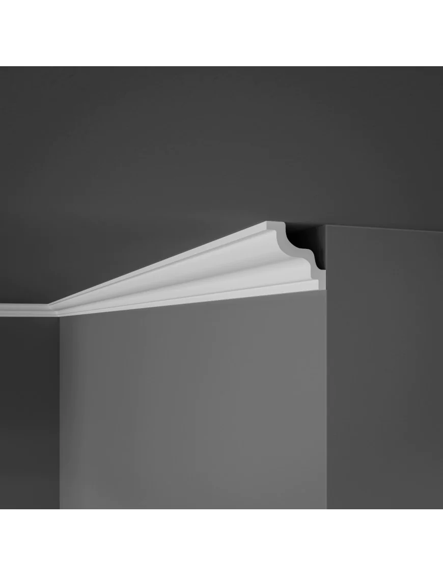 Plafondlijst vervaardigd uit geëxtrudeerd polystyreen voor een decoratieve afwerking tussen wand en plafond.