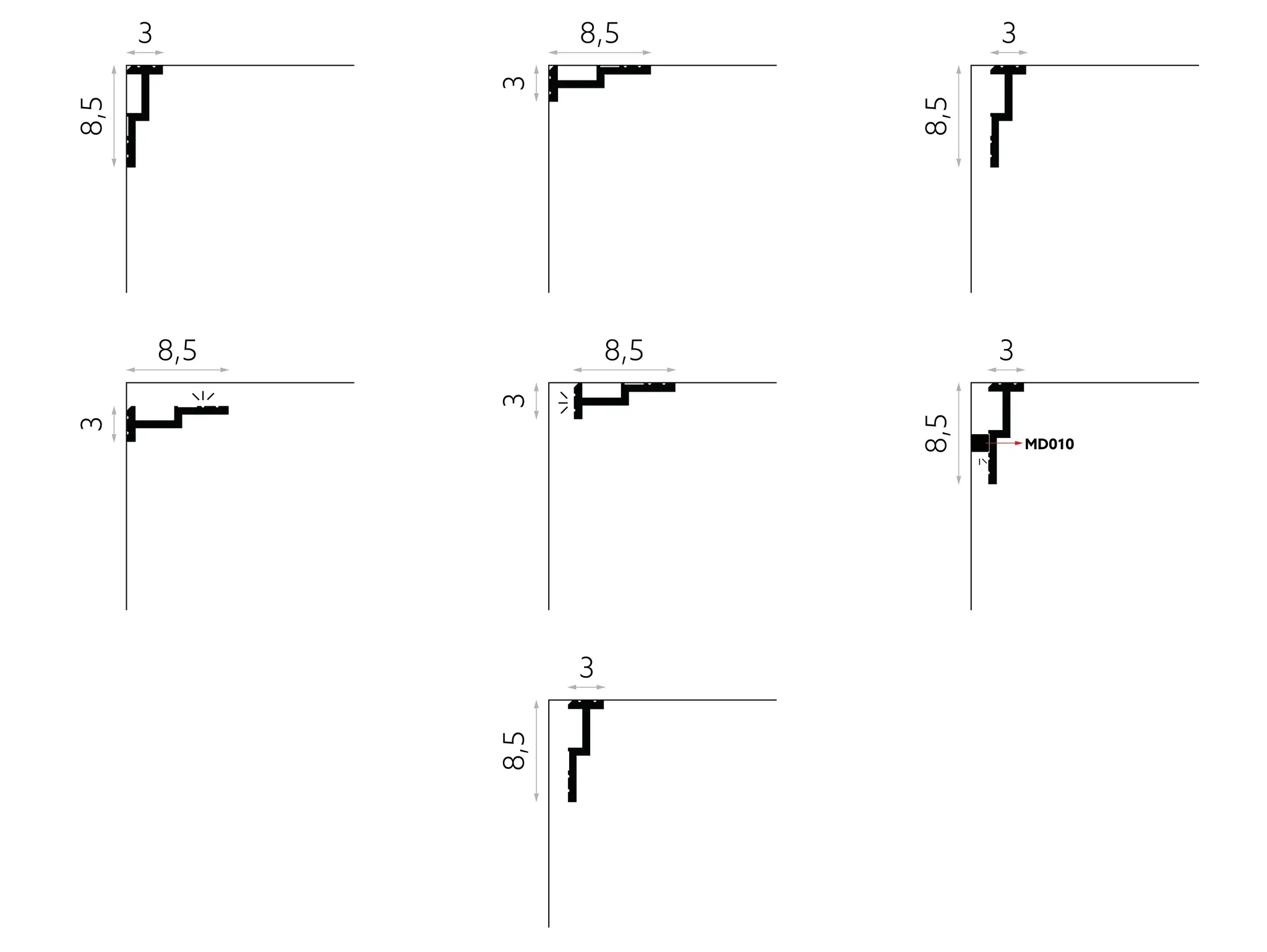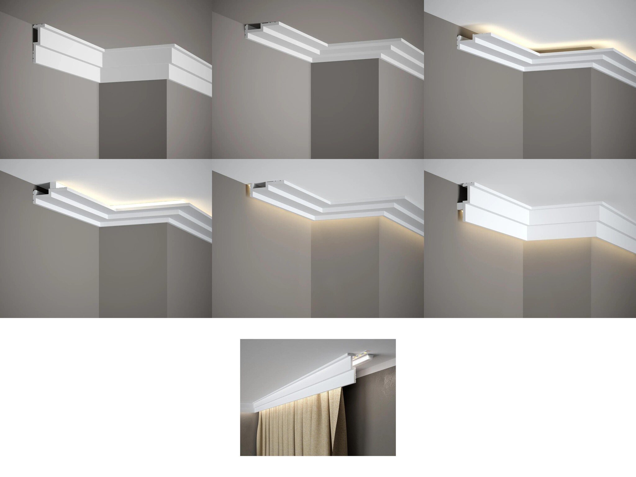 De QL024 is voorzien van speciale groeven aan de achterzijde voor een gelijkmatige verlijming en is afgewerkt met een matte primerlaag, wat de verdere afwerking vergemakkelijkt. Optioneel combineer je dit profiel met de MD010 strip voor specifieke verlichtingsopstellingen.